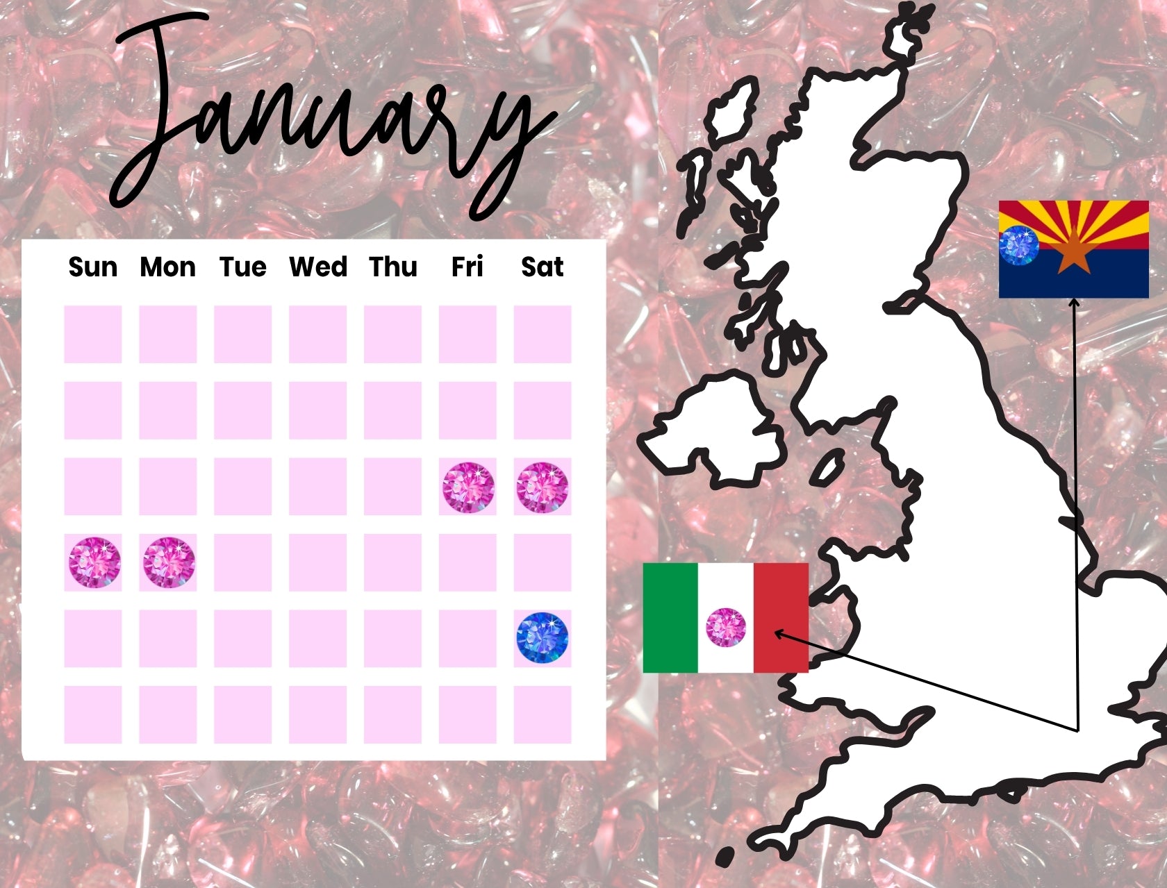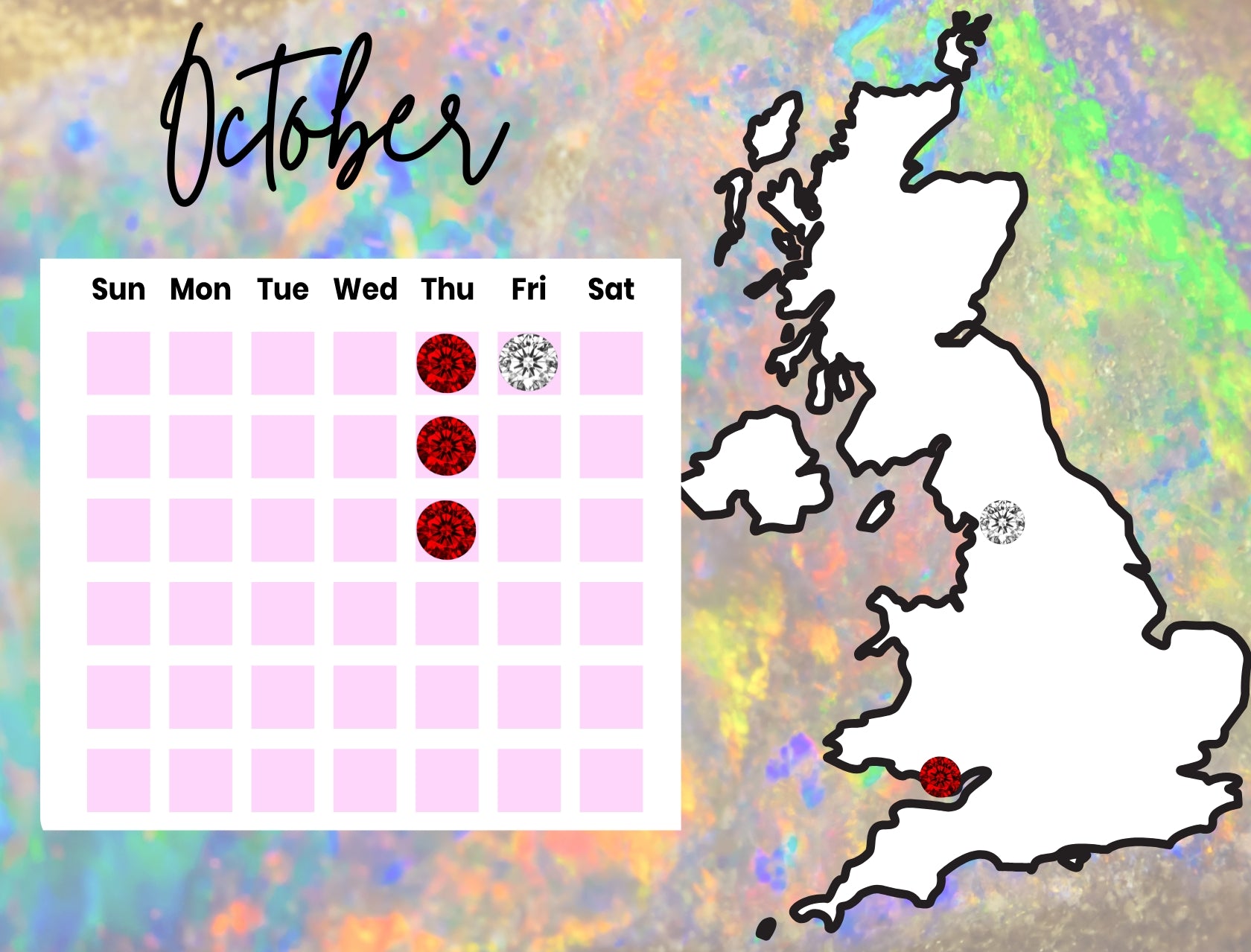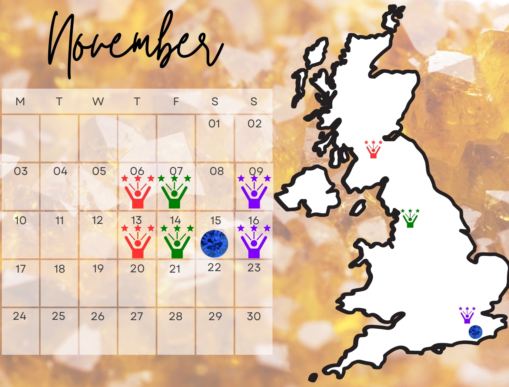 We'll give you a scoop of our recycled gems to play with, and you need to find all the stones on your bingo card for a chance to win. We provide everything you need and some education on coloured gems, as well as a drink or two to keep you hydrated!